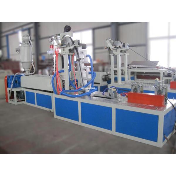 Drip irrigation plastic pipe extrusion line included two extruders, one for the inner strip and another one for the outer pipes. The inner labyrinth strip was extruded same time with the outer pipe and welded together by the particular press device. The advantages of this line is fast cooling with high speed and precise processing, the stable speed was up to 150meters/min.